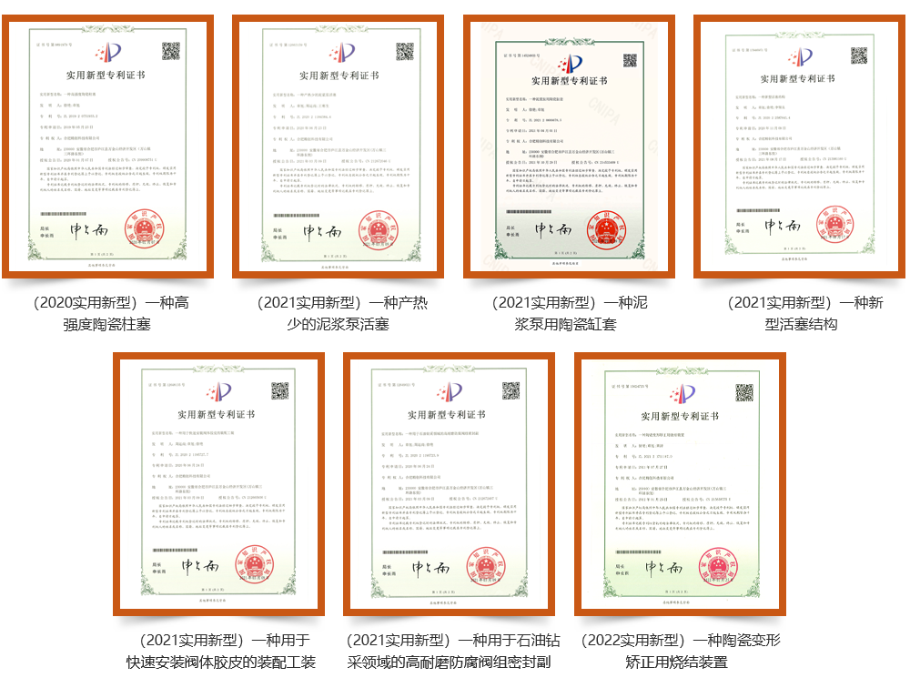 公司積極開展新材料、新技術(shù)、新產(chǎn)品的研發(fā)及應(yīng)用,取得了多項(xiàng)卓有成效的合作成果。近年來(lái)研發(fā)團(tuán)隊(duì)已授權(quán)專利32項(xiàng),其中發(fā)明專利5 項(xiàng)。陶瓷結(jié)構(gòu)件的兩個(gè)新產(chǎn)品研發(fā)分別獲得“中國(guó)創(chuàng)翼(2015)青年創(chuàng)業(yè)創(chuàng)新大賽”銀翼獎(jiǎng)和“第四屆中國(guó)創(chuàng)新創(chuàng)業(yè)大賽”優(yōu)秀企業(yè)獎(jiǎng),陶瓷缸套產(chǎn)品被授予“安徽工業(yè)精品”,“高壓泵用高強(qiáng)度高耐磨陶瓷基關(guān)鍵結(jié)構(gòu)件研發(fā)及產(chǎn)業(yè)化”項(xiàng)目獲得省級(jí)科技進(jìn)步三等獎(jiǎng)。主持制定《柱塞泵用氧化物陶瓷柱塞》國(guó)家標(biāo)準(zhǔn)。